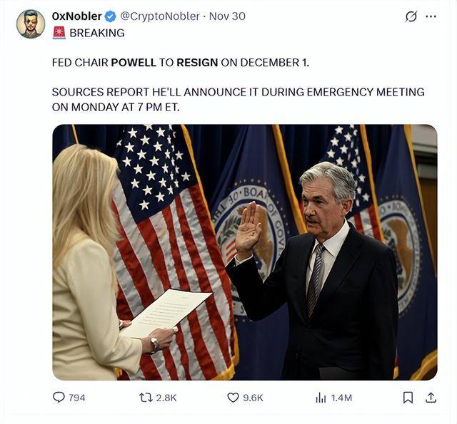 在特朗普作出上述表态之际, 11月30日晚间,有海外“小作文”称,美联储主席鲍威尔将在美东时间周一晚7点举行的紧急会议上宣布辞职。
