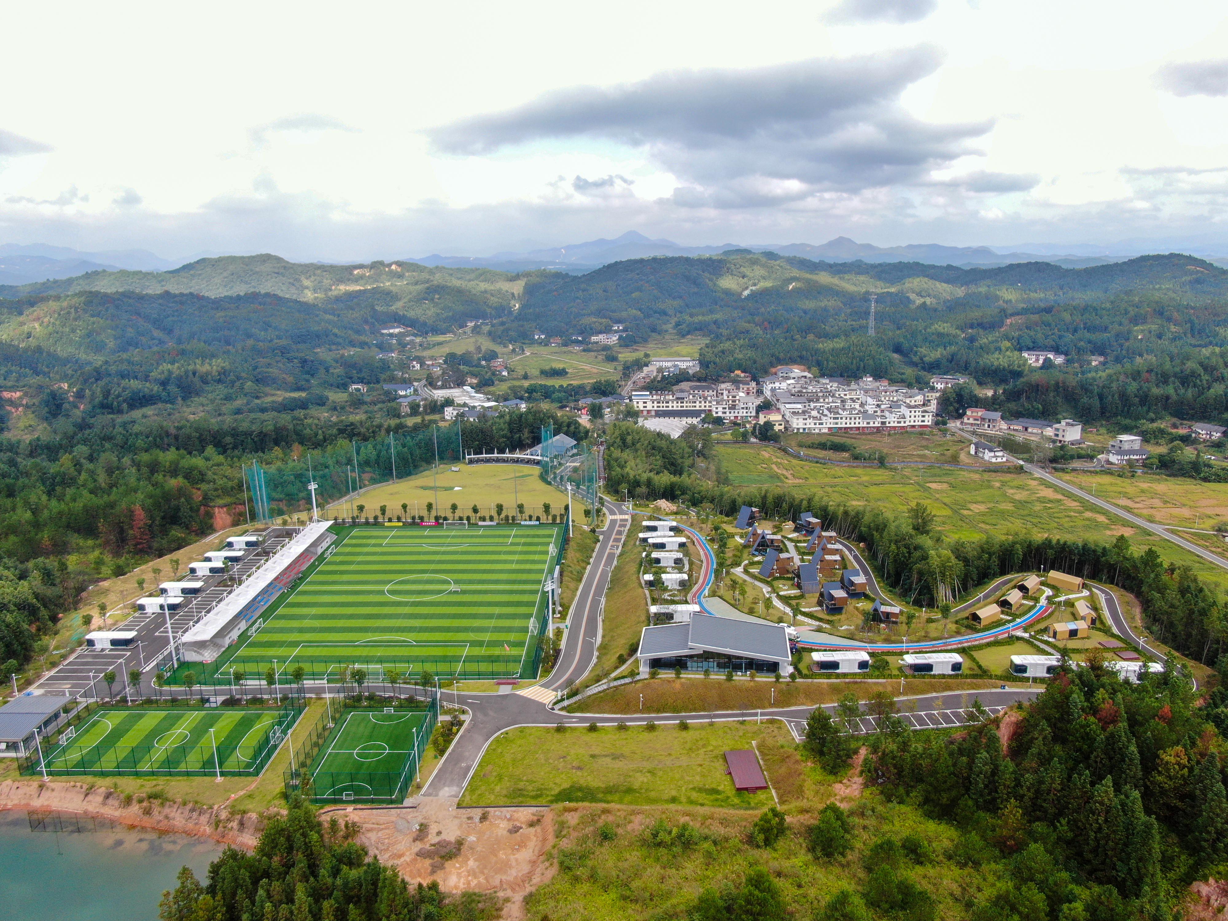 各场地结合地方特色实现差异化发展:岿美山镇依托工矿底蕴改造苏联专家援建工人村,建成“工矿足球主题小镇”;岭北南丰足球村嵌入太空舱、星空房等元素,打造沉浸式足球体验空间,形成了“县城引领、乡镇支撑”的全域发展新格局。
