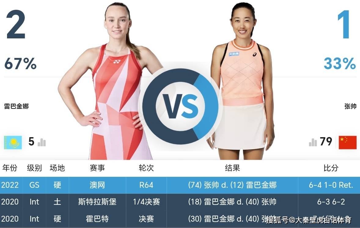 首先,两人在巡回赛赛场的唯一一次交手,发生在大满贯赛场,2022赛季的澳网第二轮,张帅领先时收到对方退赛大礼。
